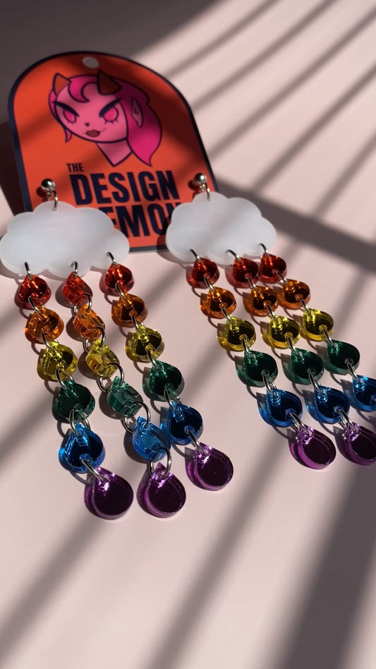 XL Rainbow Rain Cloud Earrings