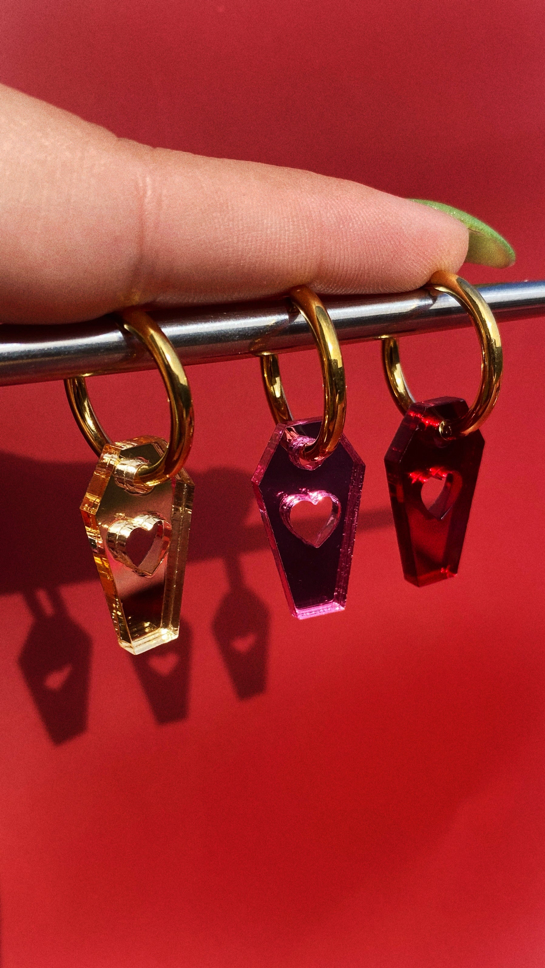- Each purchase comes with 2 pairs of interchangeable charms (2 coffins & 2 hearts)