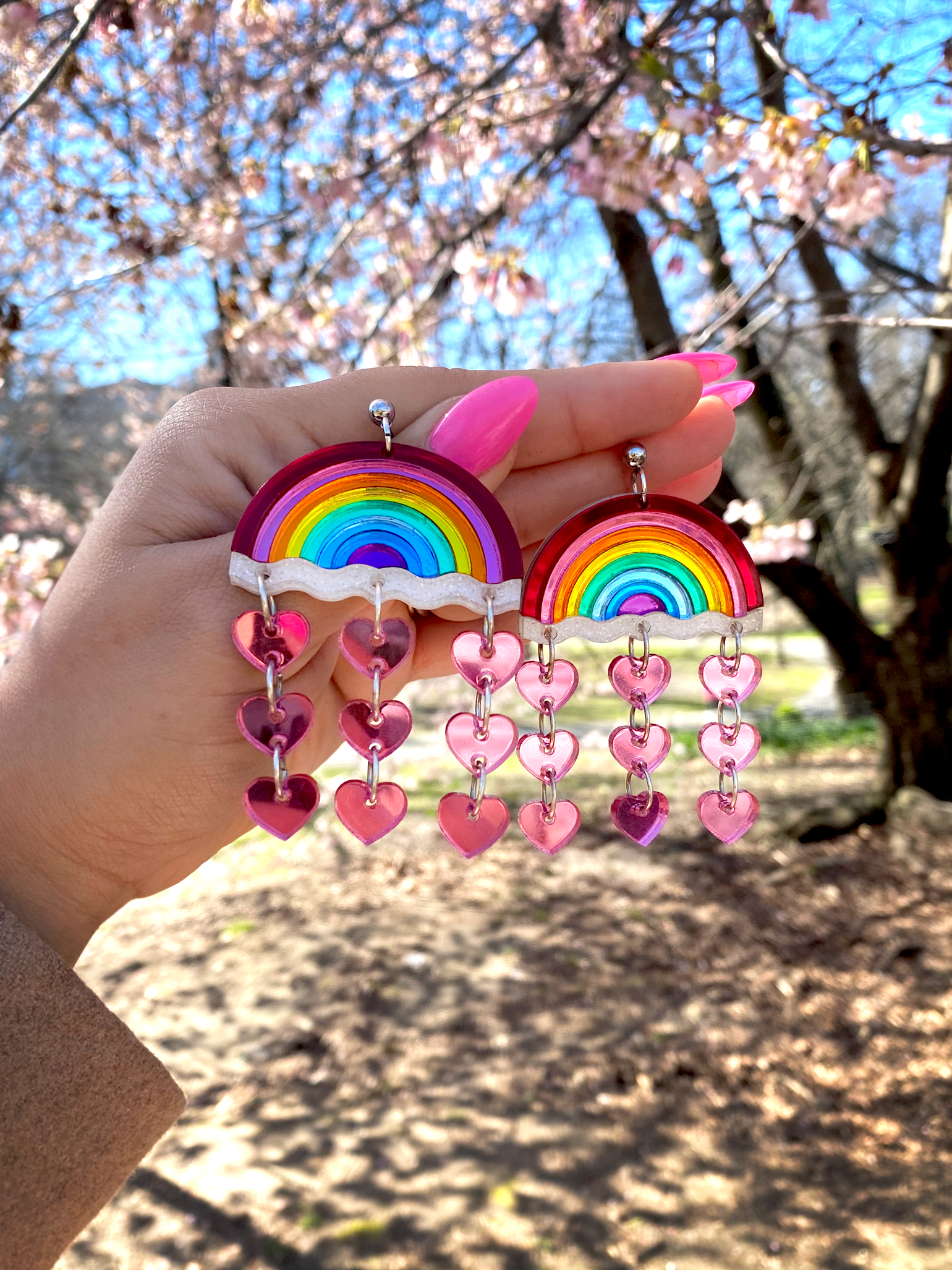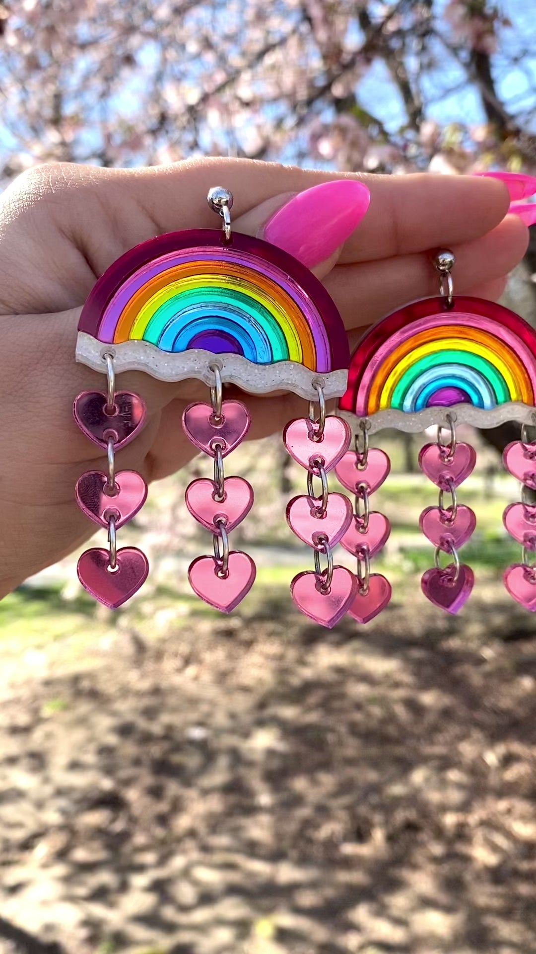 - These rainbow beauties are made from layered acrylic mirror with a white glitter cloud
